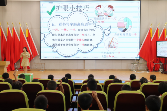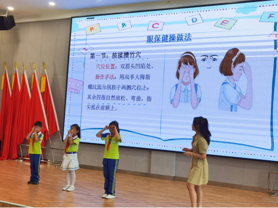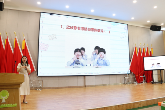 活动中,教师们从“眼睛的作用”、“近视形成的原因”、“护眼知识”等方面为员工们讲授了一堂生动的预防近视科普小课堂,并现场示范眼保健操的动作要领,呼吁大家平时要认真规范做眼保健操、保持正确读写姿势、积极参加户外体育活动锻炼,养成良好的用眼护眼习惯。
