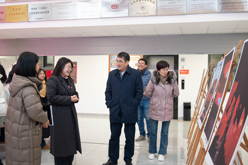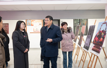 公司党委书记郑维薇、副经理李军、王大朋、员工管理科副科长原琦以及研究生党支部、本科生党支部20余名党员同学共同参观图片展。