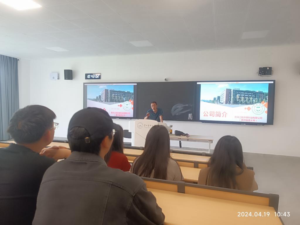 贵州江航环保科技有限公司前身为中国航天科工集团〇六一基地的下属机构,迄今已经有55年历史,现为贵州省首家开展环评、环境监测及职业卫生技术服务的第三方机构,拥有相应资质的综合型企业,此次招聘会提供4个岗位,20余名相关专业毕业生参与企业宣讲、投递简历、企业交流等环节。